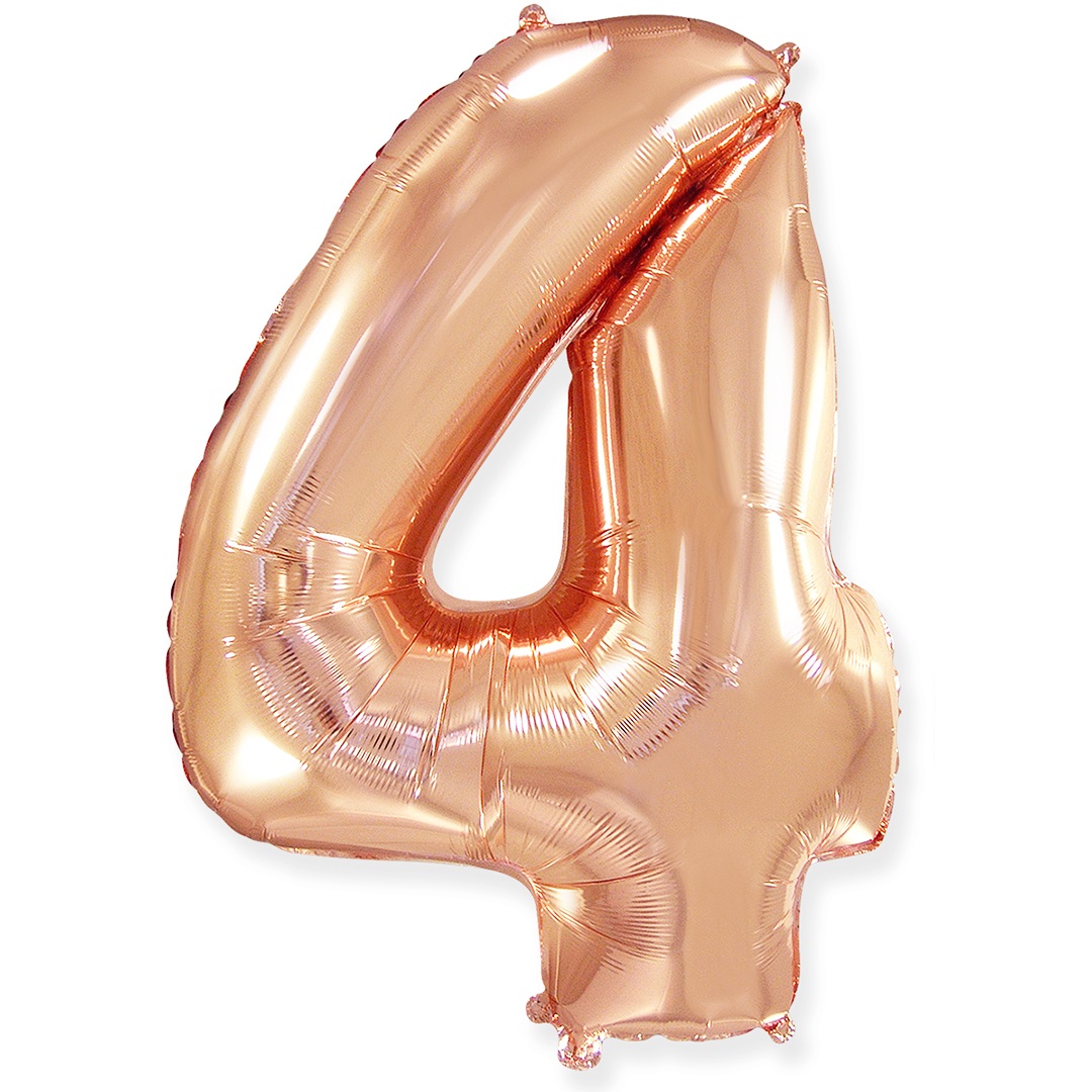 Шар (40»/102 см) Цифра, 4, Розовое Золото, 1 шт. в упак.