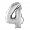 Шар (40»/102 см) Цифра, 4, Серебро, в упаковке 1 шт.
