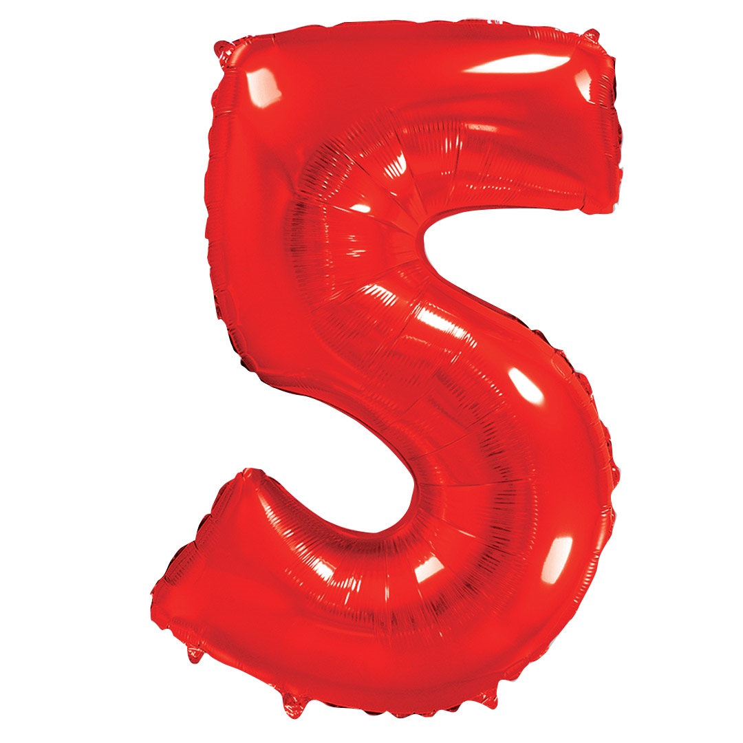 Шар (40»/102 см) Цифра, 5, Красный, 1 шт. в упак.