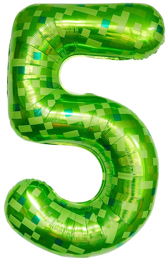 Шар (40»/102 см) Цифра, 5 Пиксели, Зеленый, 1 шт. в уп.