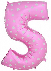 Шар (40»/102 см) Цифра, 5, Розовый, 1 шт.