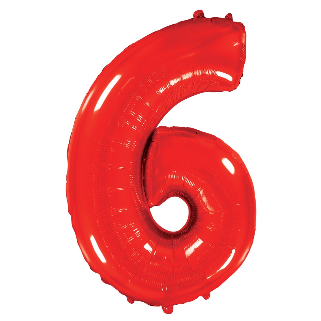 Шар (40»/102 см) Цифра, 6, Красный, 1 шт. в упак.