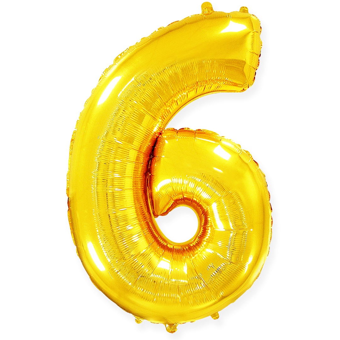 Шар (40»/102 см) Цифра, 6, Золото, 1 шт. в упак.