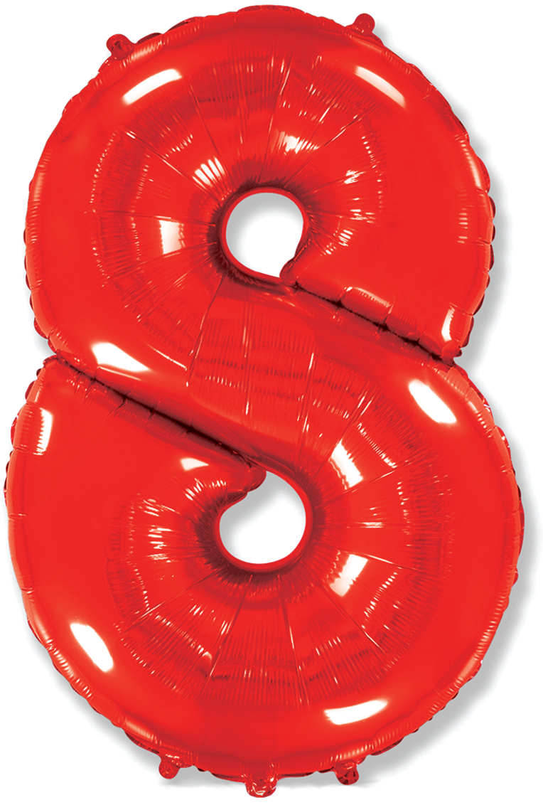 Шар (40»/102 см) Цифра, 8, Красный, 1 шт. в упак.