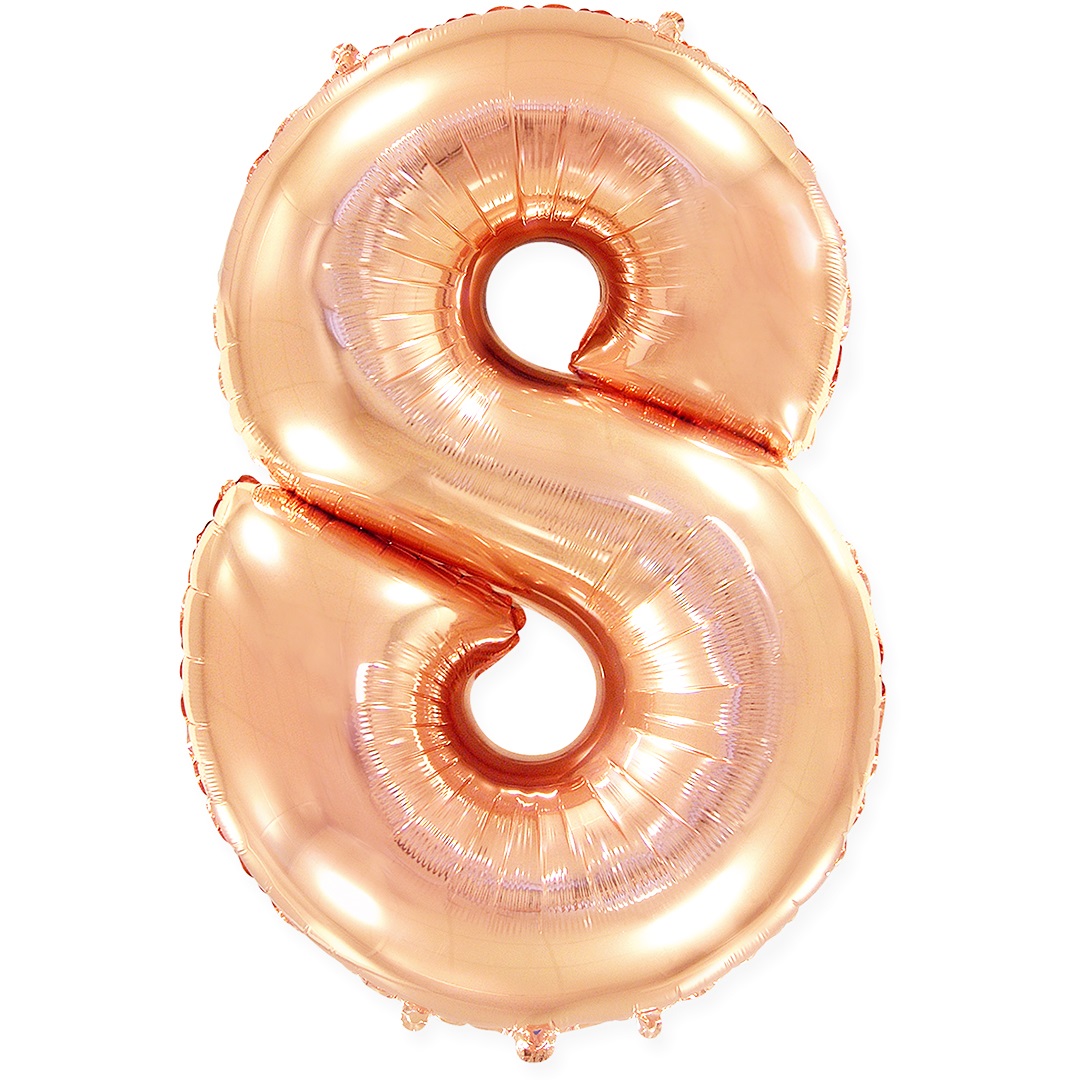 Шар (40»/102 см) Цифра, 8, Розовое Золото, 1 шт. в упак.