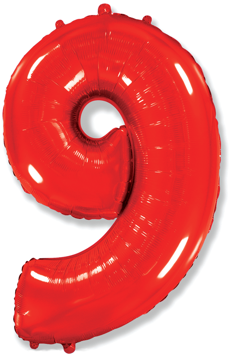 Шар (40»/102 см) Цифра, 9, Красный, 1 шт.