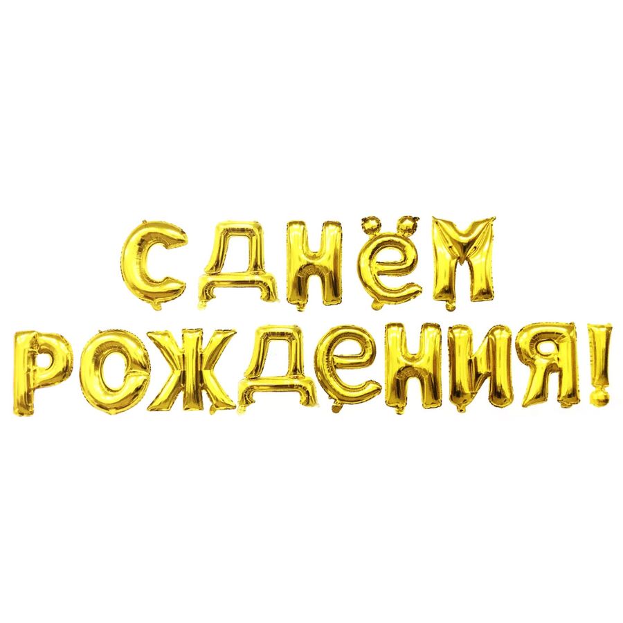 Шар Ф 16″ С Днем рождения ШАРЫ-БУКВЫ золото набор 13шт