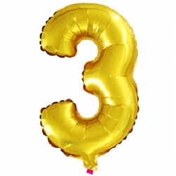 Шар с клапаном (16»/41 см) Цифра, 3, Золото, 1 шт.