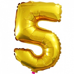Шар с клапаном (16»/41 см) Цифра, 5, Золото, 1 шт.