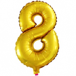 Шар с клапаном (16»/41 см) Цифра, 8, Золото, 1 шт.