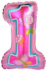 Шар с клапаном (16»/41 см) Цифра, Первый ДР Девочки, Розовый, 1 шт.