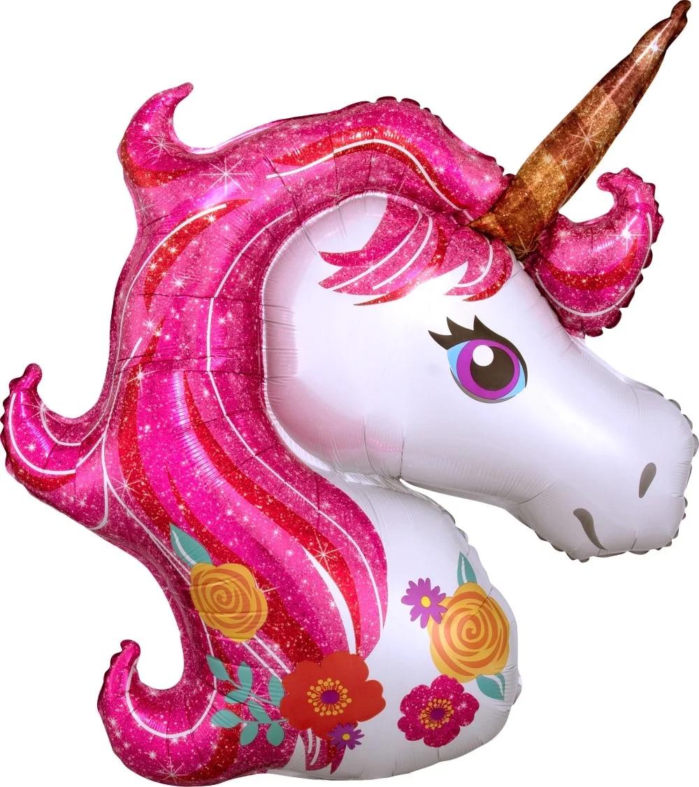 Шар с клапаном (17»/43 см) Мини-фигура, Голова, Цветочный Единорог, Розовый, 5 шт. в уп. (цв.этик.)