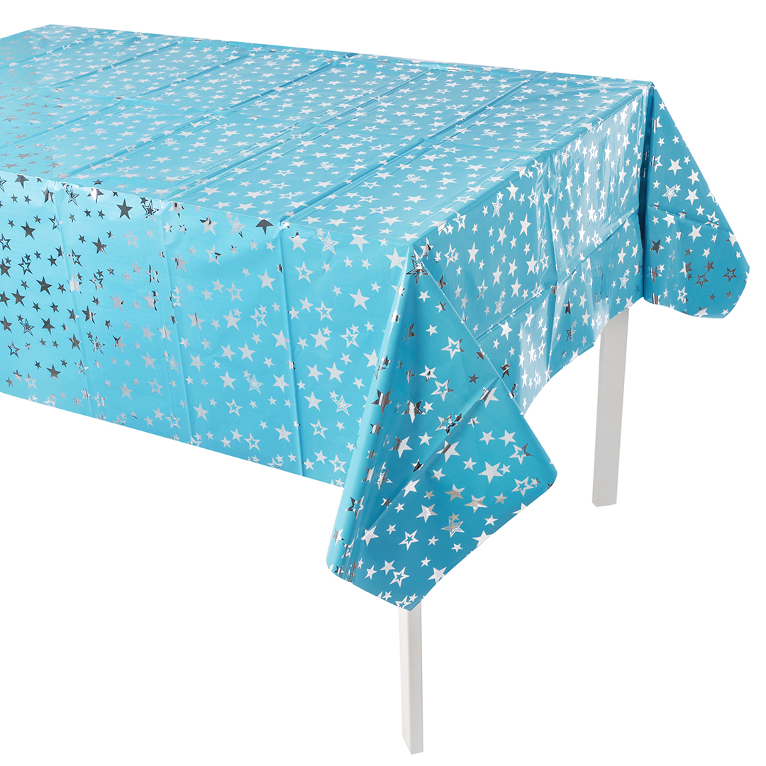 Скатерть одноразовая, Звезды Люкс, Голубой/Серебро, Металлик, 137*183 см, 1 шт.
