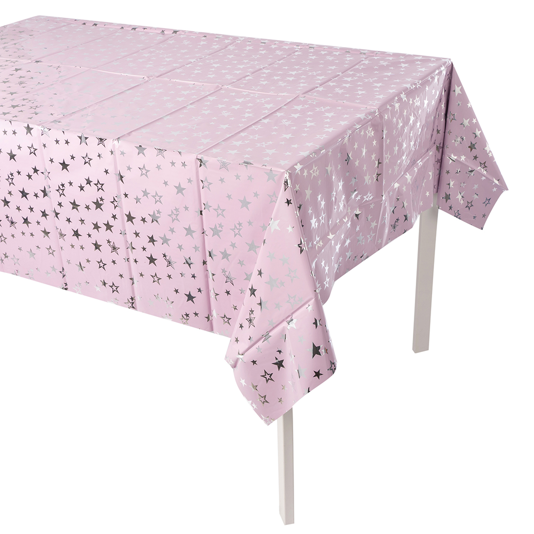 Скатерть одноразовая, Звезды Люкс, Сиреневый/Серебро, Металлик, 137*183 см, 1 шт.