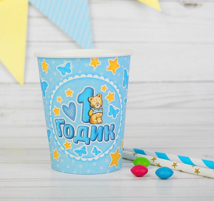Стакан бумажный «1 годик» голубой цвет (250 мл-10 шт)