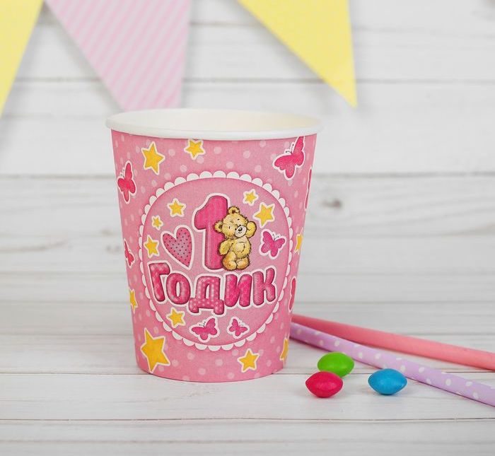 Стакан бумажный «1 годик» розовый цвет (250 мл- 10 шт)