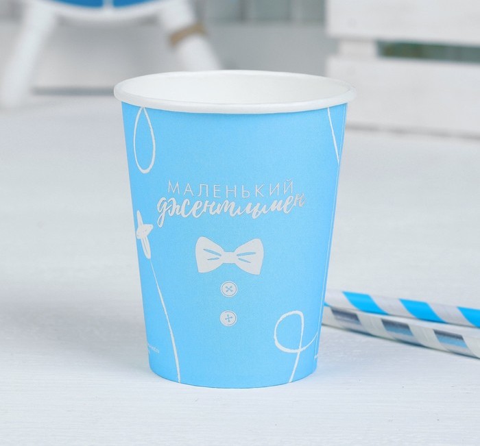 Стакан бумажный (250мл.-10 шт)»Маленький джентельмен» тиснение серебро