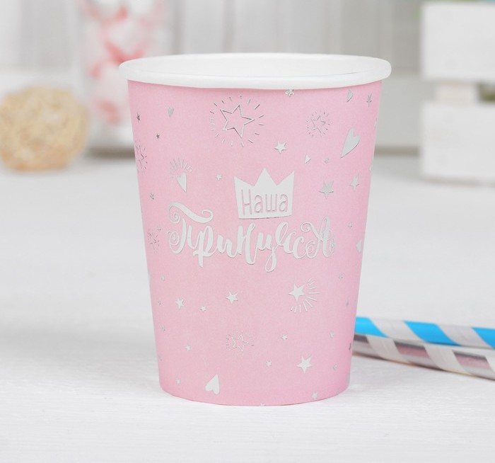 Стакан бумажный 250мл»Наша принцесса» 10 шт тиснение серебро