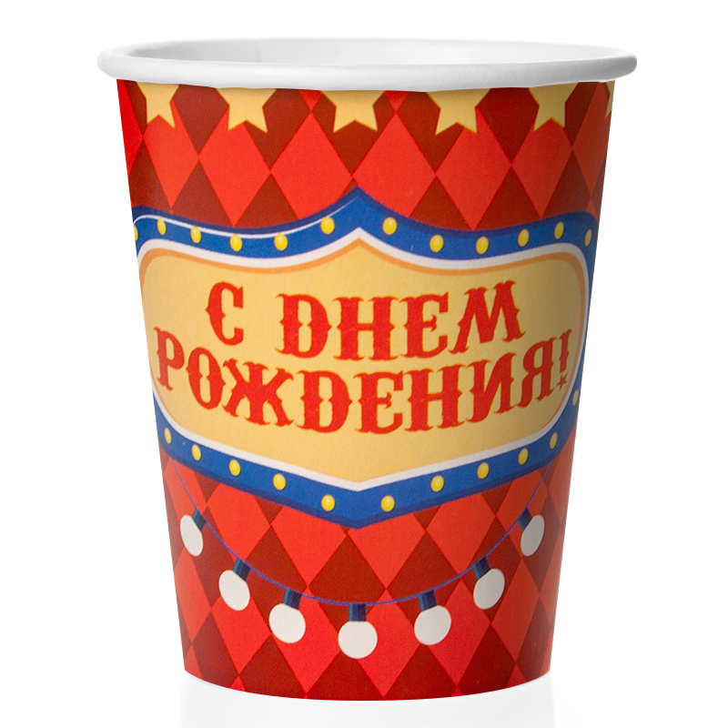Стаканы (250 мл) Цирк, С Днем Рождения!, Красный, 6 шт.