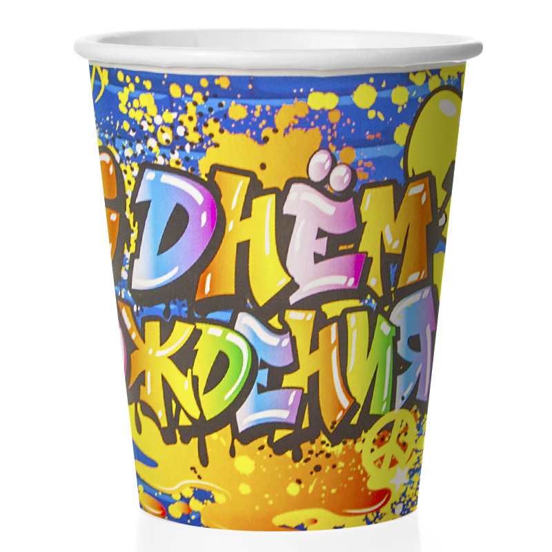 Стаканы (250 мл) Граффити, С Днем Рождения!, Синий, 6 шт.