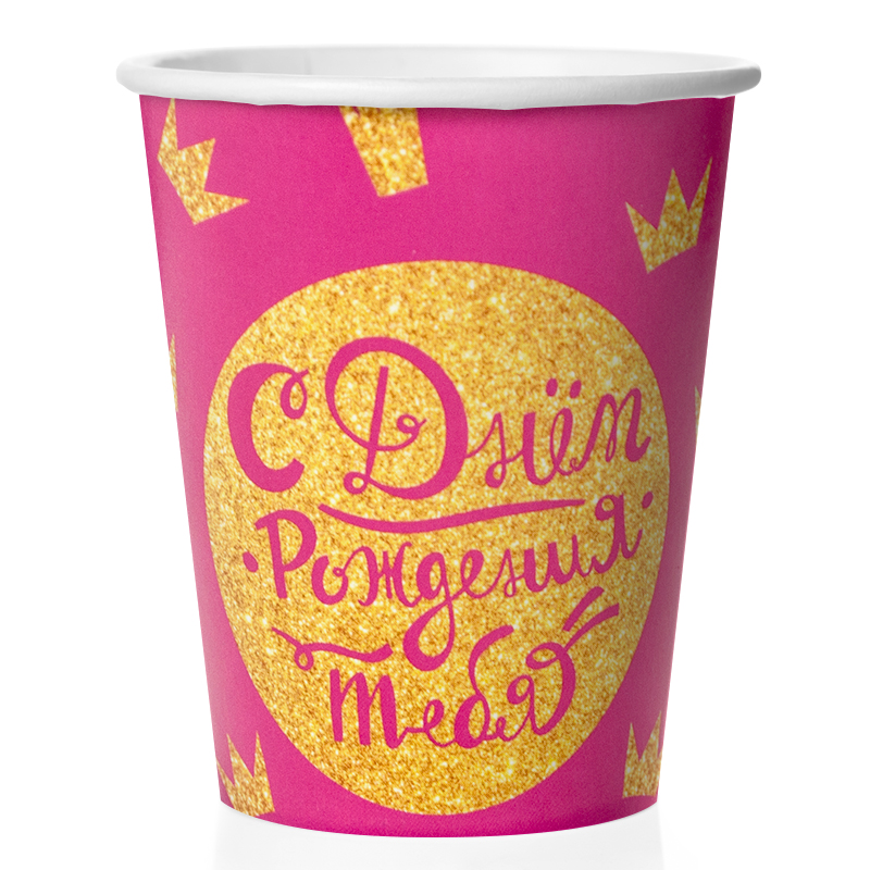 Стаканы (250 мл) С Днем Рождения! (корона для принцессы), Розовый, 6 шт.