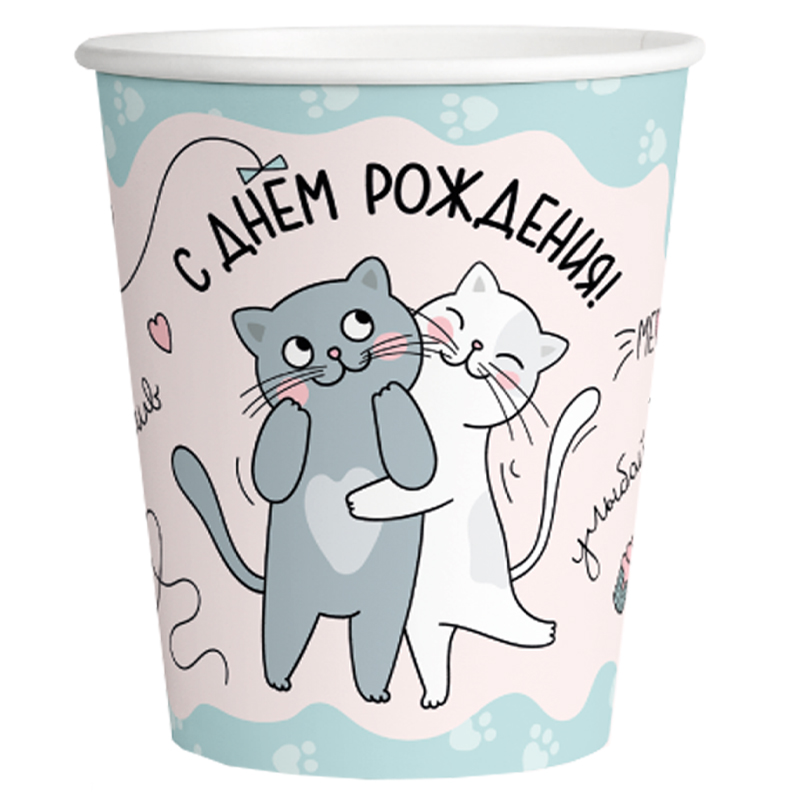 Стаканы 250 мл «С Днем Рождения» Милые Котики / набор 6 шт /