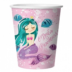 Стаканы (250 мл.), С Днем Рождения! (принцесса Русалочка), 6 шт.