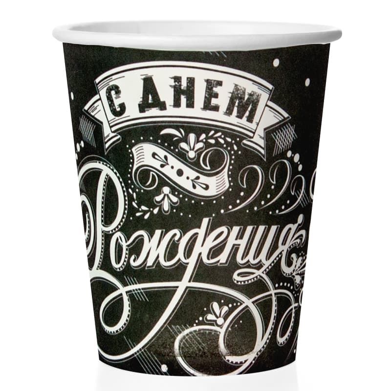 Стаканы (250 мл) С Днем Рождения! (винтажный узор), Черный, 6 шт.