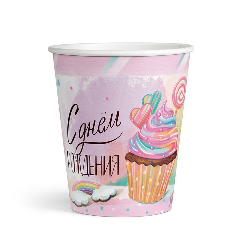 Стаканы 250 мл «Сладкий День Рождения» / набор 6 шт /