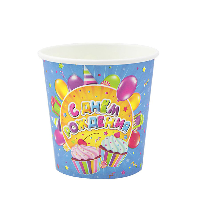 Стаканы бумажные 250 мл, «С Днем рождения» Сладости, 6 шт. в уп.