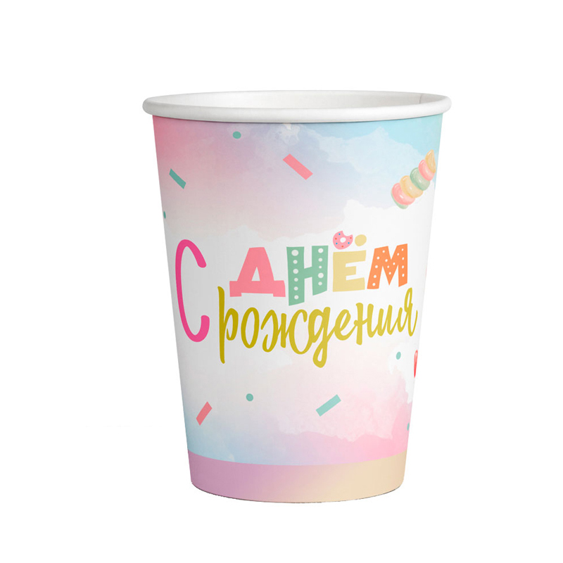 Стаканы бумажные «С Днем Рождения» Маршмеллоу