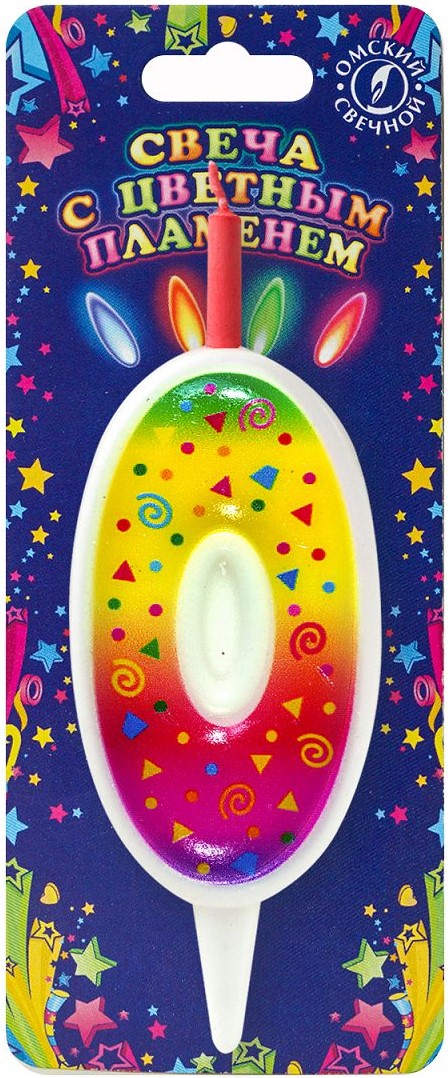 Свеча Цифра, 0 Цветное пламя, 12 см, 1 шт.