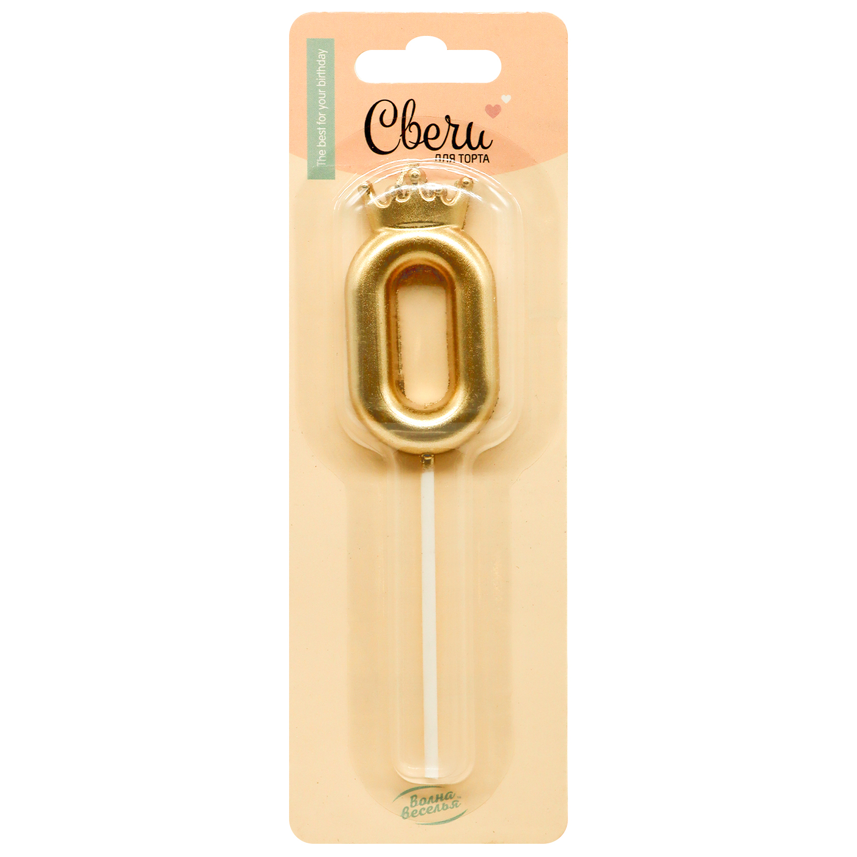 Свеча Цифра, 0 Корона, на шпажке, Золото, Металлик, 3,5*5,5 + 6,5 см, 1 шт. с держат.