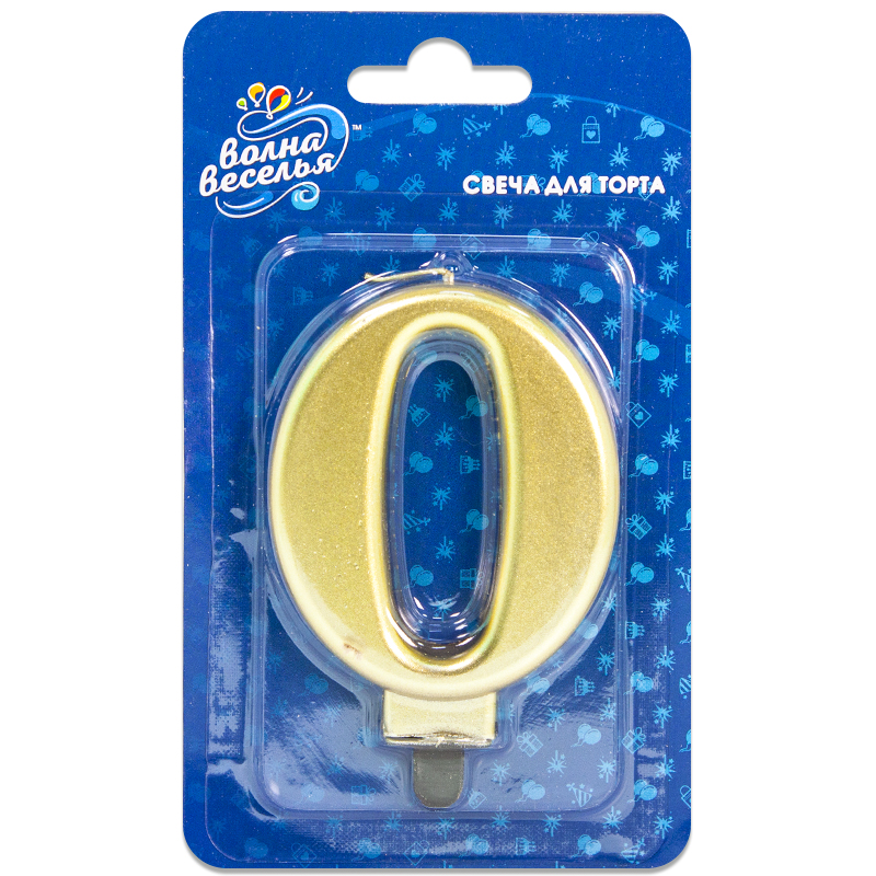 Свеча Цифра, 0, Золото, 8 см, 1 шт.