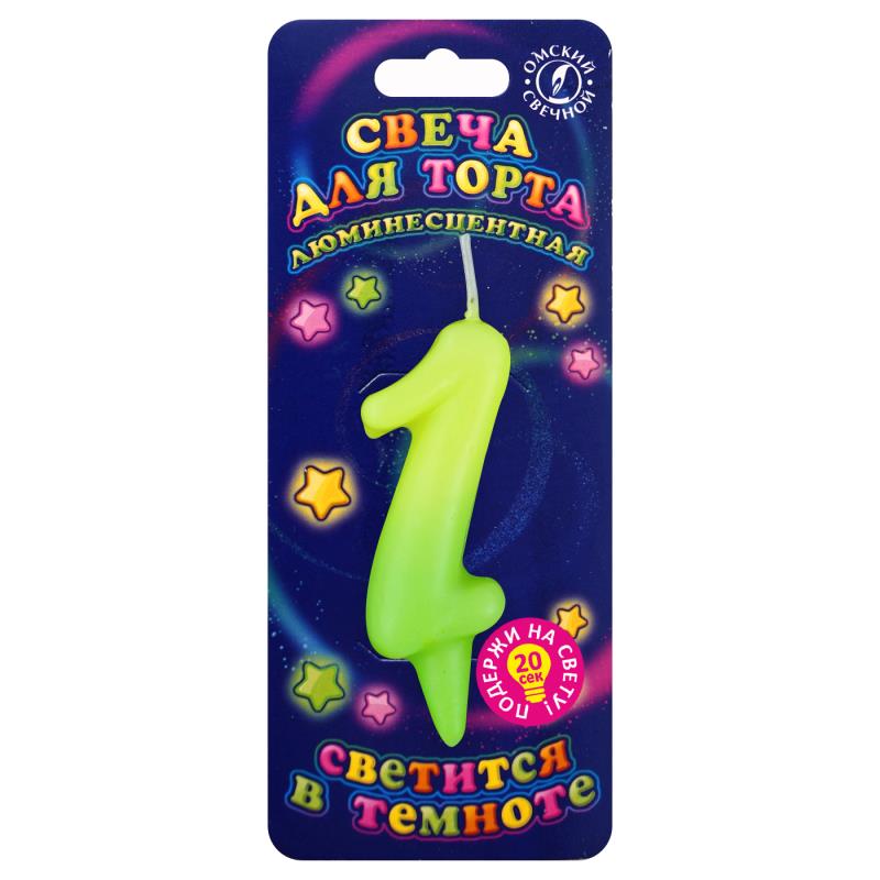 Свеча Цифра, 1 Люминесцентная, Флуор, 8 см, 1 шт.