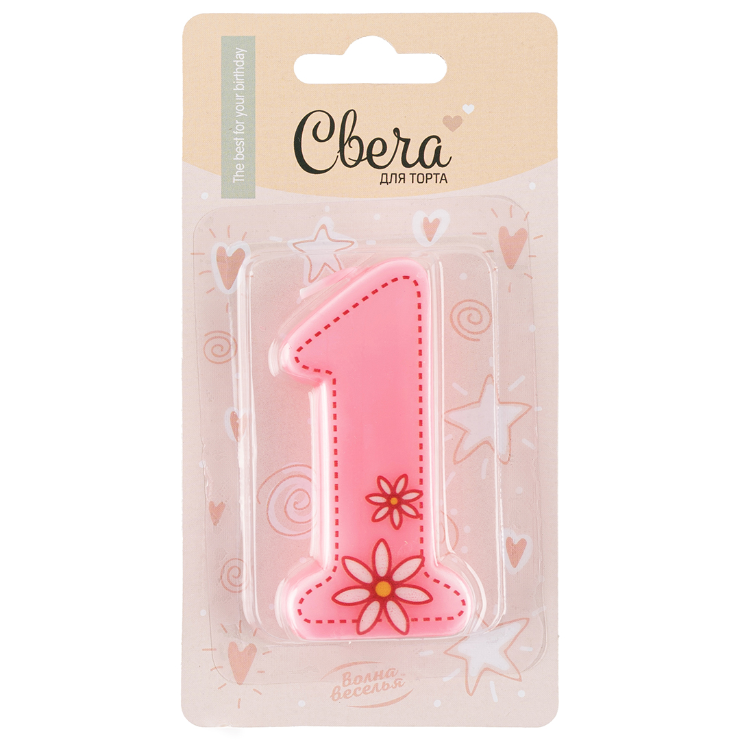 Свеча Цифра 1 розовая с цветком, 7,5 см