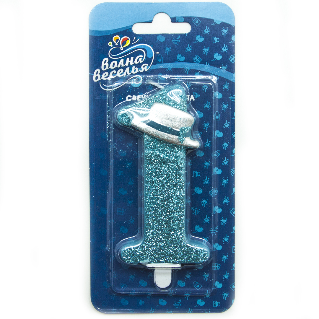 Свеча Цифра, 1 Шляпа для джентльмена, Голубой, с блестками, 9 см, 1 шт.