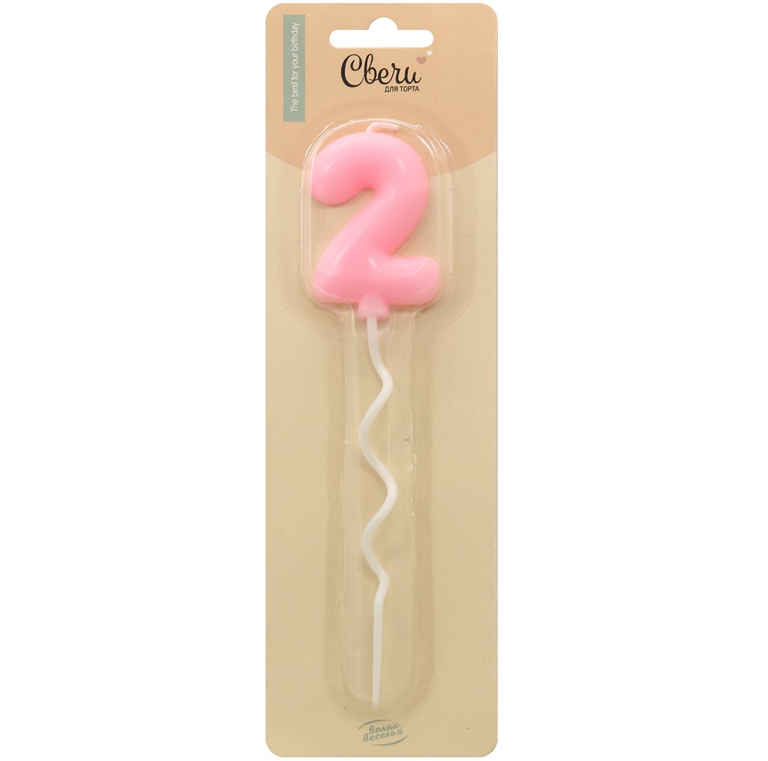 Свеча Цифра, 2 Воздушная серия, Розовый, 6 + 11 см, 1 шт. с держат.