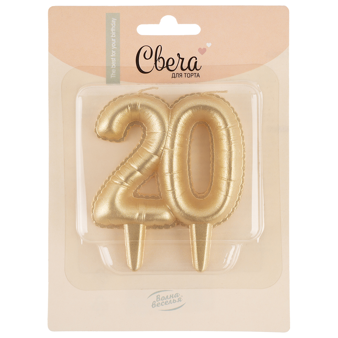 Свеча Цифра 20, Золотой узор, 10 см, 1 шт.