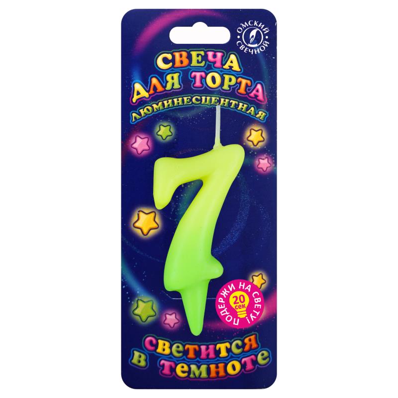 Свеча Цифра, 7 Люминесцентная, Флуор, 8 см, 1 шт.