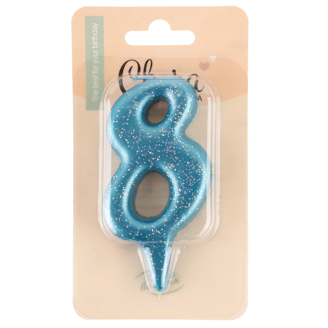 Свеча Цифра, 8 Овал, Синий, с блестками, 8 см, 1 шт.