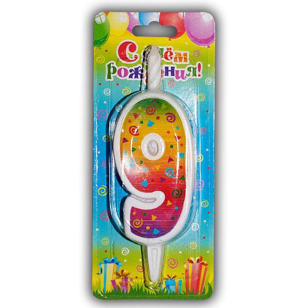 Свеча тортовая цифра «Радужная» 9 /1шт/