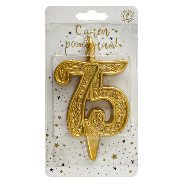 Свеча тортовая узорная юбилейная 75 «золотая»,1 шт.