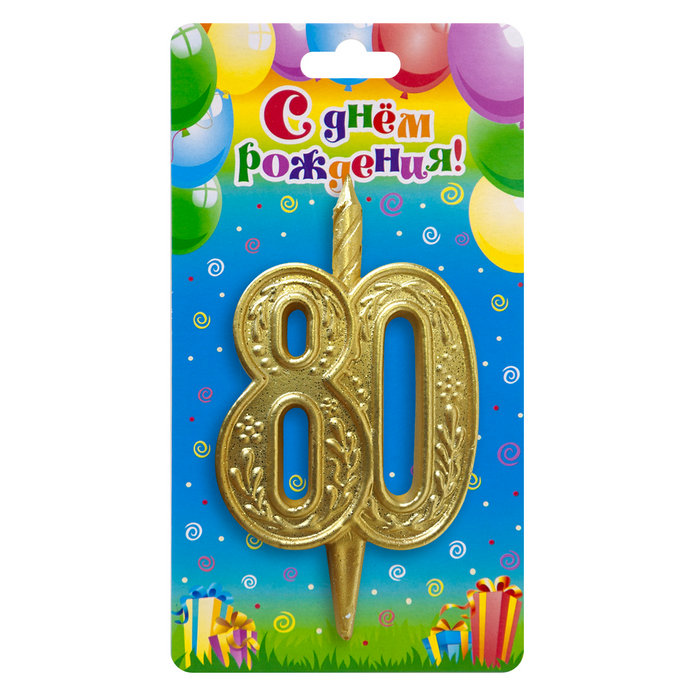 Свеча тортовая узорная юбилейная 80 «золотая»,1 шт.