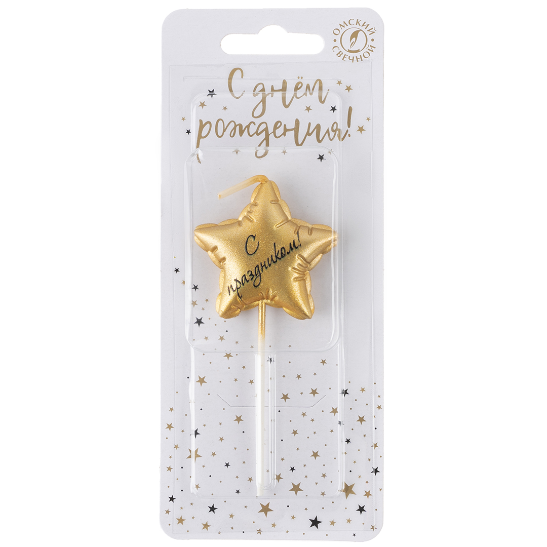 Свеча Звезда, Воздушный шар, на шпажке, Золото, Металлик, 4,2 + 4,8 см, 1 шт. с держат.