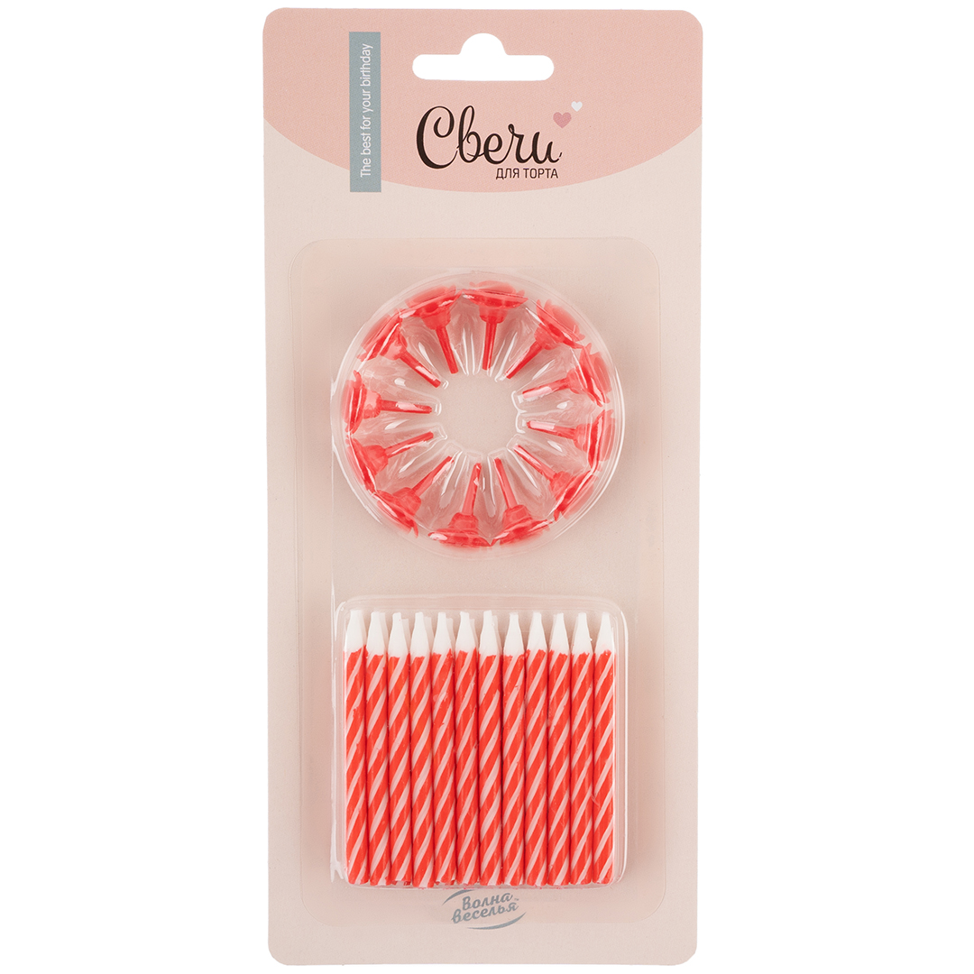 Свечи Белые полоски, Красный, 6 см, 24 шт.