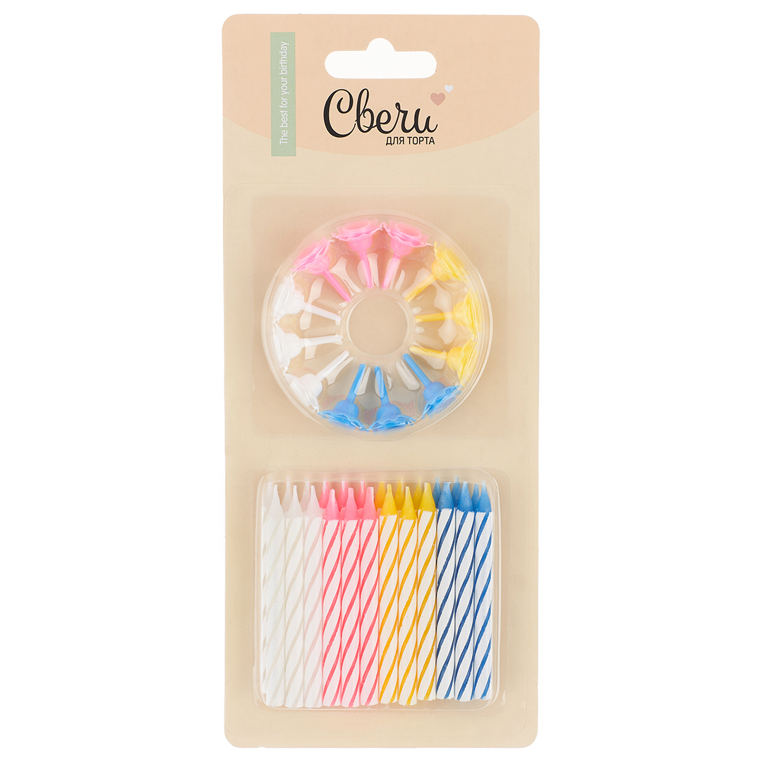 Свечи Белые полоски, Красный, 6 см, 24 шт.