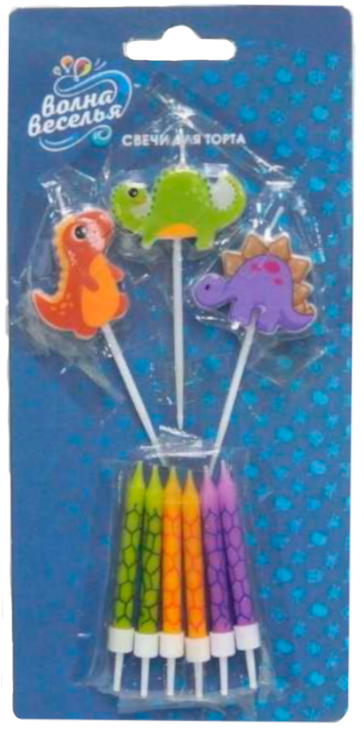 Свечи Динозаврики, Ассорти, 6 см, 9 шт.