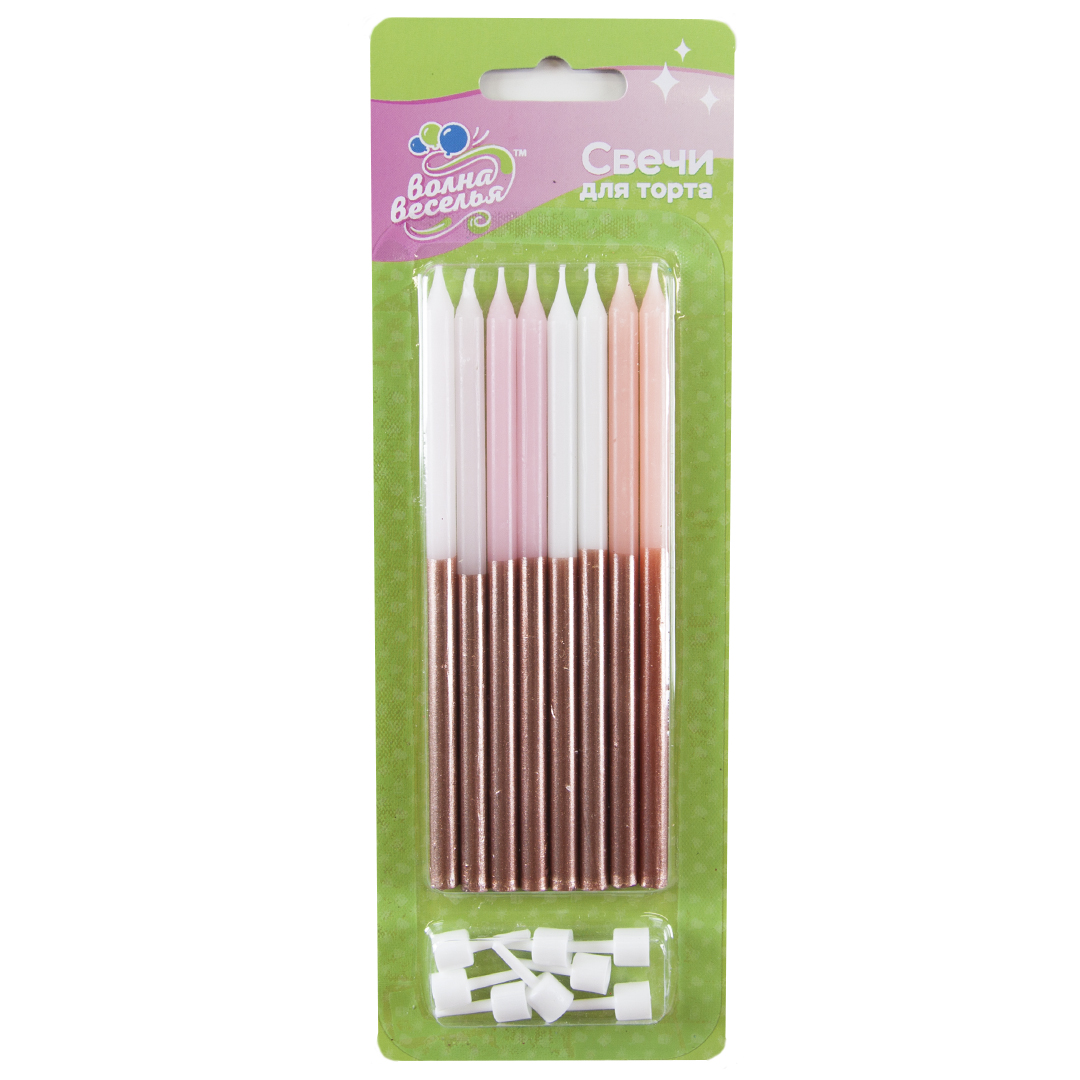 Свечи Розовый микс, Металлик, 0,6*12 см, 8 шт. с держат.