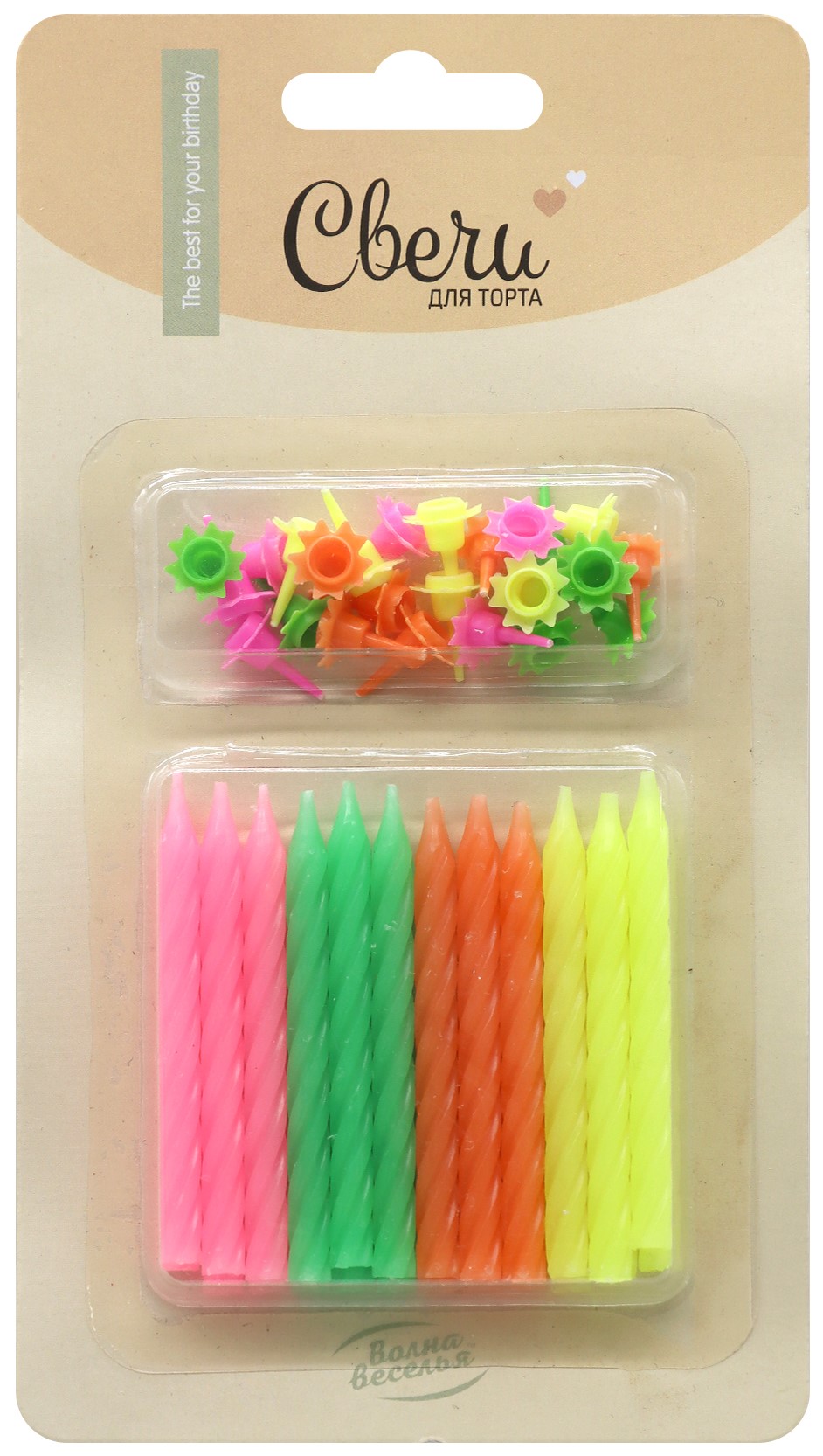 Свечи Сочный микс, Ассорти, 0,5*6 см, 24 шт. с держат.